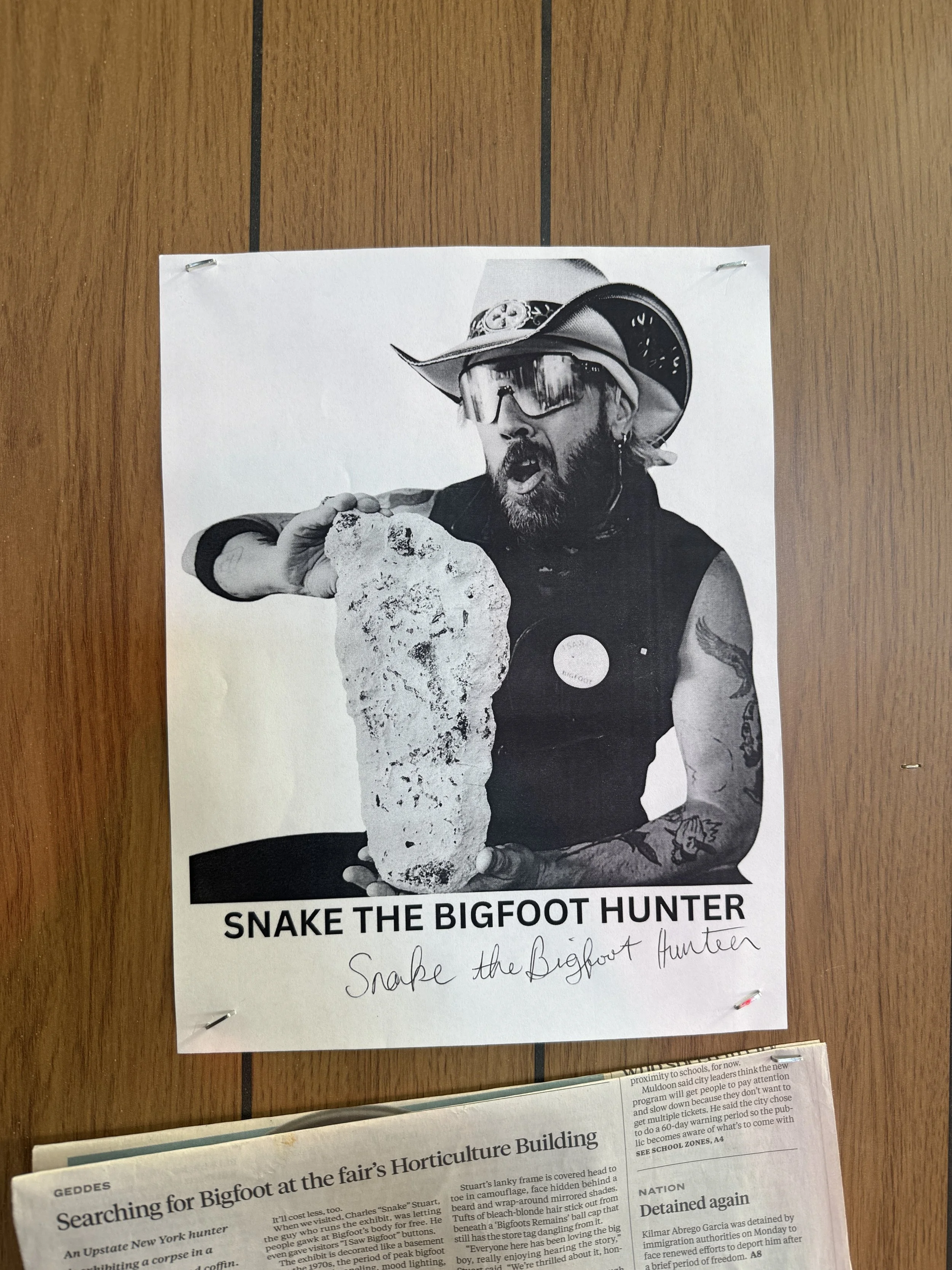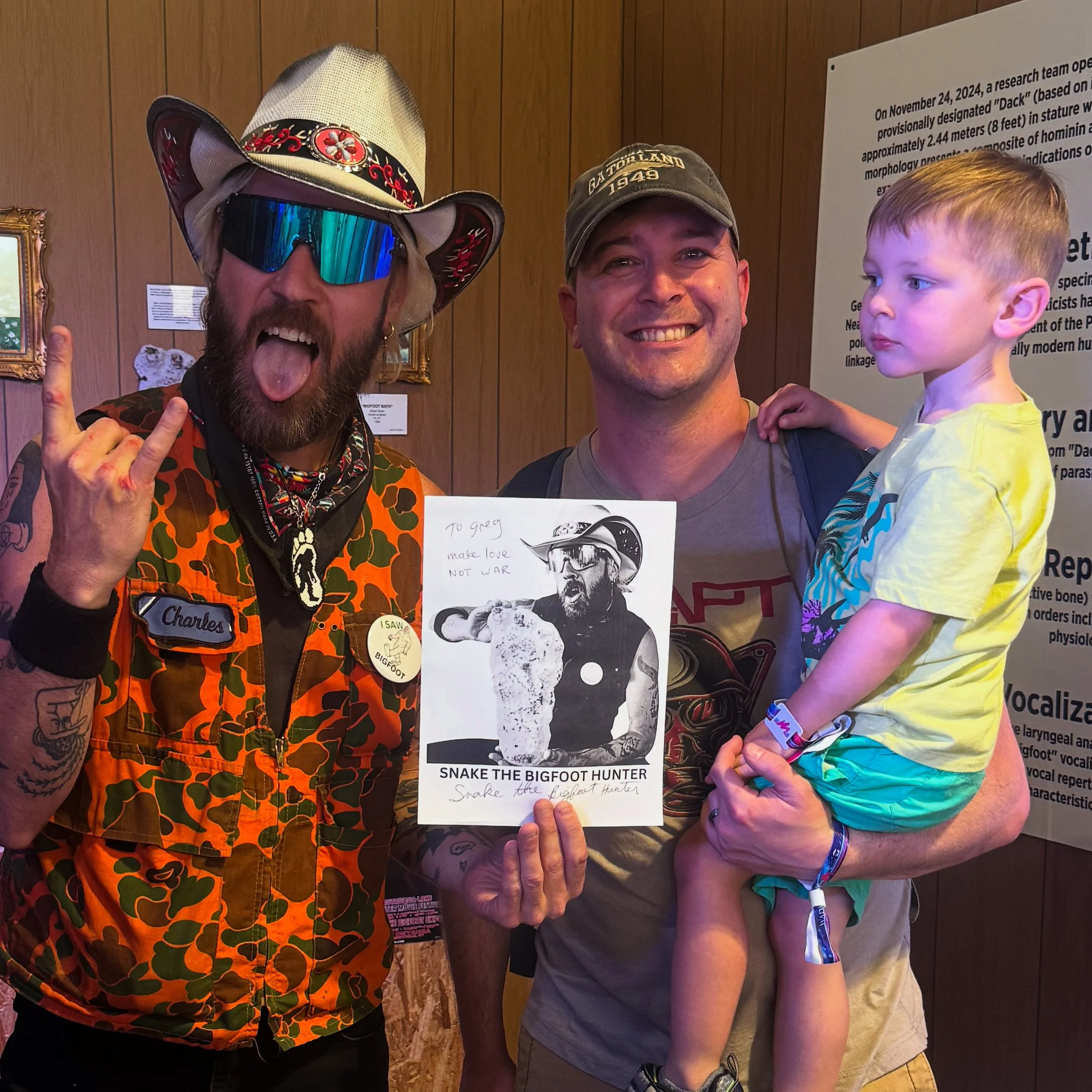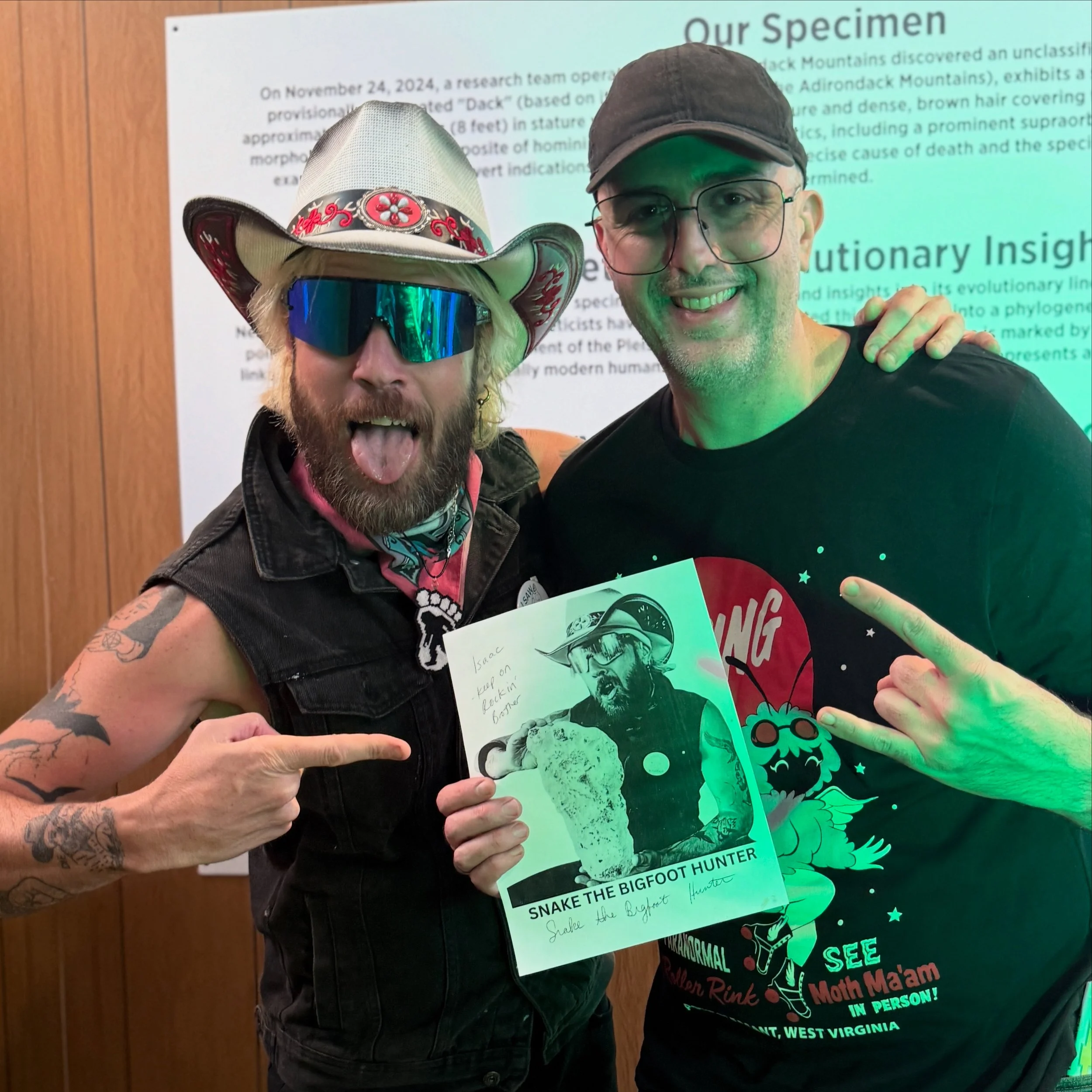SNAKE THE BIGFOOT HUNTER (Charles Stuart) is a seasoned Bigfoot expert from the heart of the Adirondack Mountains. SNAKE first encountered Bigfoot at age 11 at Sabattis Scout Reservation in Adirondack Park. Alone in the woods, a giant foreboding figure appeared in the distance in front of him, making him freeze in his tracks. He watched the giant creature for a second and then turned and fled for his life. As an adult SNAKE was able to capture Bigfoot howls in the woods along the Vermont / NY border. But It was his discovery of an actual Bigfoot Body in the fall of 2024 that catapulted him from the local lore to international legend.