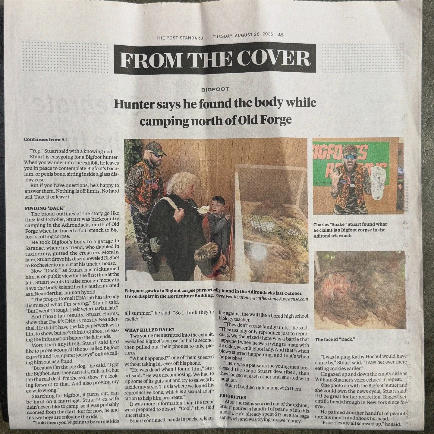 AFTER A HIGHLY SUCCESSFUL SHOWING OF OUR VERIFIED BIGFOOT SPECIMEN “DACK” AT THE NY STATE FAIR WE ARE EXPANDING OUR PROGRAM.